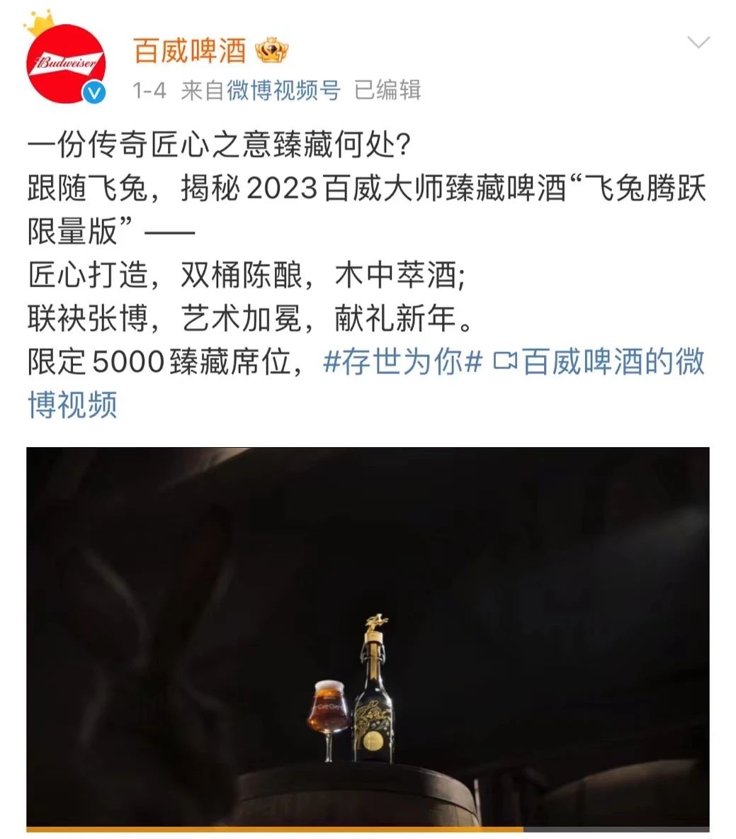 早在2017年,百威即收购了上海精酿啤酒商拳击猫,同期还在上海开设了旗下精酿品牌“鹅岛”酒吧餐厅。除布局精酿领域,百威中国还发力超高端啤酒市场,作为企业新增长点。2022年百威中国推出了超高端啤酒“传奇虎年”限量版,此后2023年再次推出“飞兔腾跃”产品,两款啤酒售价均为1588元,限量5000份的“饥饿营销”,试图打动高端消费人群。