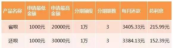 对比它们的分期利息,还呗比省呗要划算,比方说播播用它们各自网站的计算器算出:还呗借1万元分期3个月的总利息是152.39元,而省呗分期借1万元3个月的总利息是215.99元。
