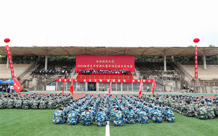 9月22日上午,西安财经大学在长安校区举行2023级新生开学典礼暨军训总结表彰大会。校领导,各职能部门负责人,各学院院长、党委书记,全体参训干部、校友代表及2023级全体本科生、研究生参加大会。大会由党委副书记李国武主持。