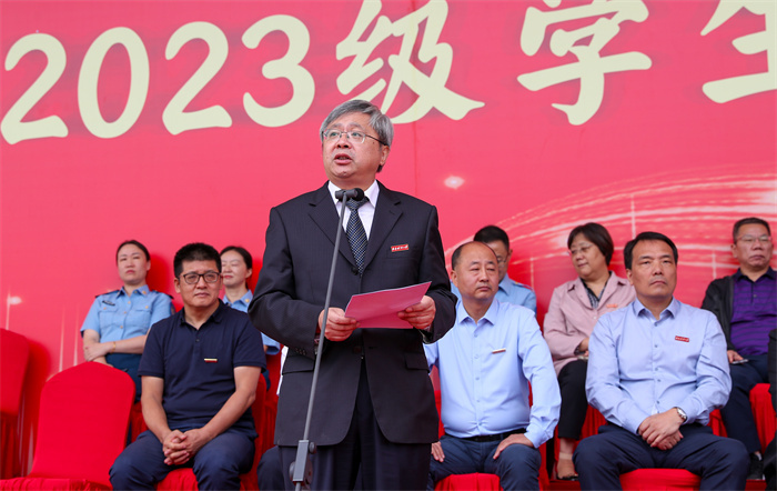 校长方明代表学校向来自五湖四海的2023级新生表示祝贺和欢迎!向陪伴学子成长、培育学子成才的家人和师长致以衷心感谢!他指出,学校先后培养出近18万名毕业生,遍布国家和陕西省各行各业,学校生源质量、培养质量和就业质量稳步提高,赢得社会广泛赞誉与认同。他希望同学们在这里传承“博学、明理、立诚、济世”的校训,成长为具备健全人格、宽厚基础、创新思维、家国情怀和社会责任感的西财大人。