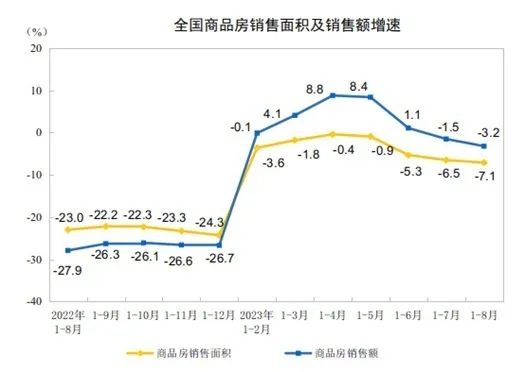 具体到广州而言,2022年,广州新房交易下滑30%,新房住宅下滑32%,今年上半年下跌0.4%。截至目前,新房市场交易连续5个月下跌,绝对交易水平降至去年11月以来的新低。克而瑞统计的新盘去化率8月份只有9%。
