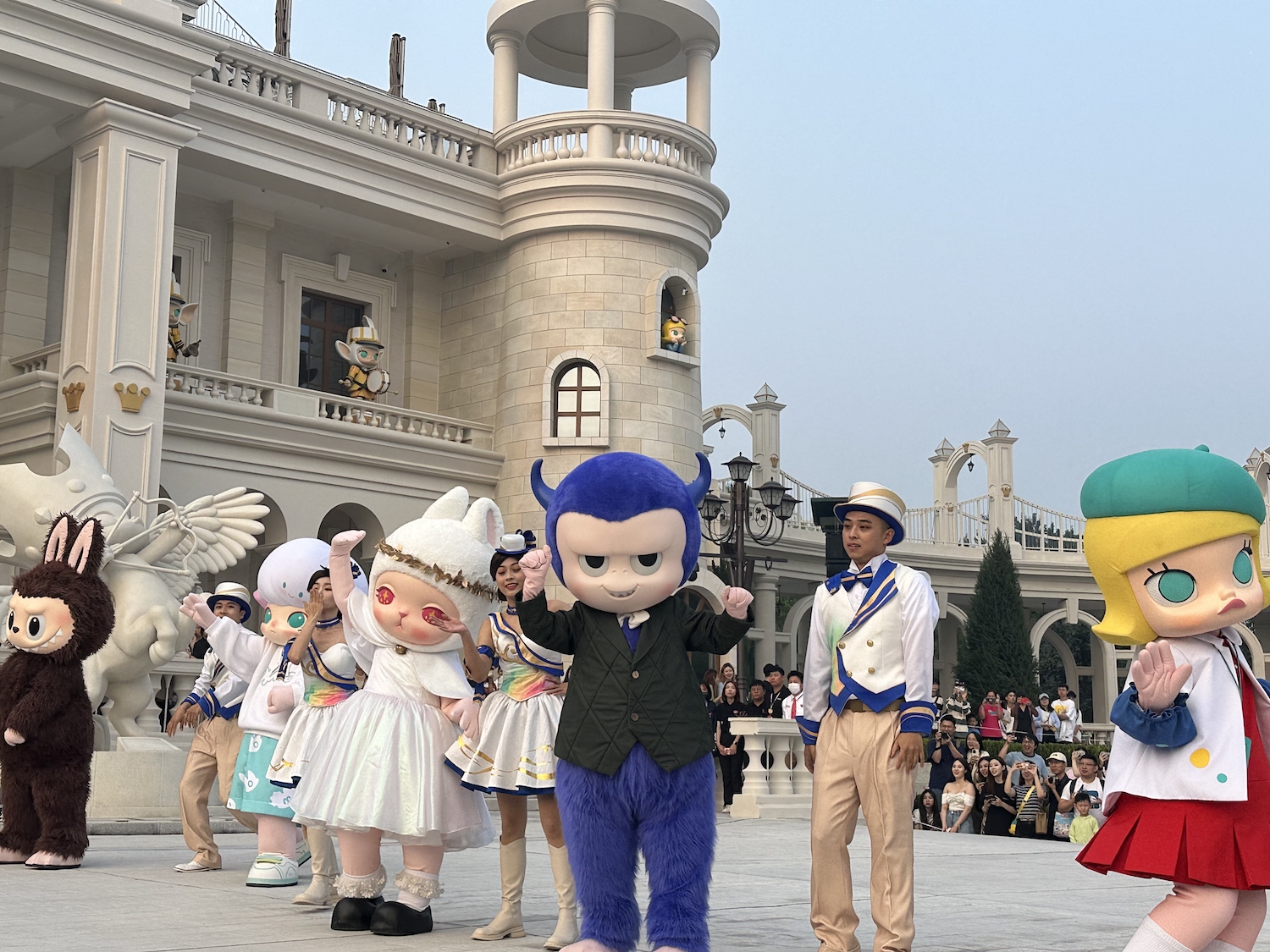 乐园内每天都有多个场次的偶装表演,热门角色均有出现,在内测表演中不时能听到周围人群的欢呼,还有粉丝热情地呼喊角色名称,希望与之互动。“还是很期待能够抱抱我喜欢的角色,和他们合影。他们不再只是一个‘小摆件’,而是真的来到现实中与我互动。”有泡泡玛特的粉丝对界面新闻说。