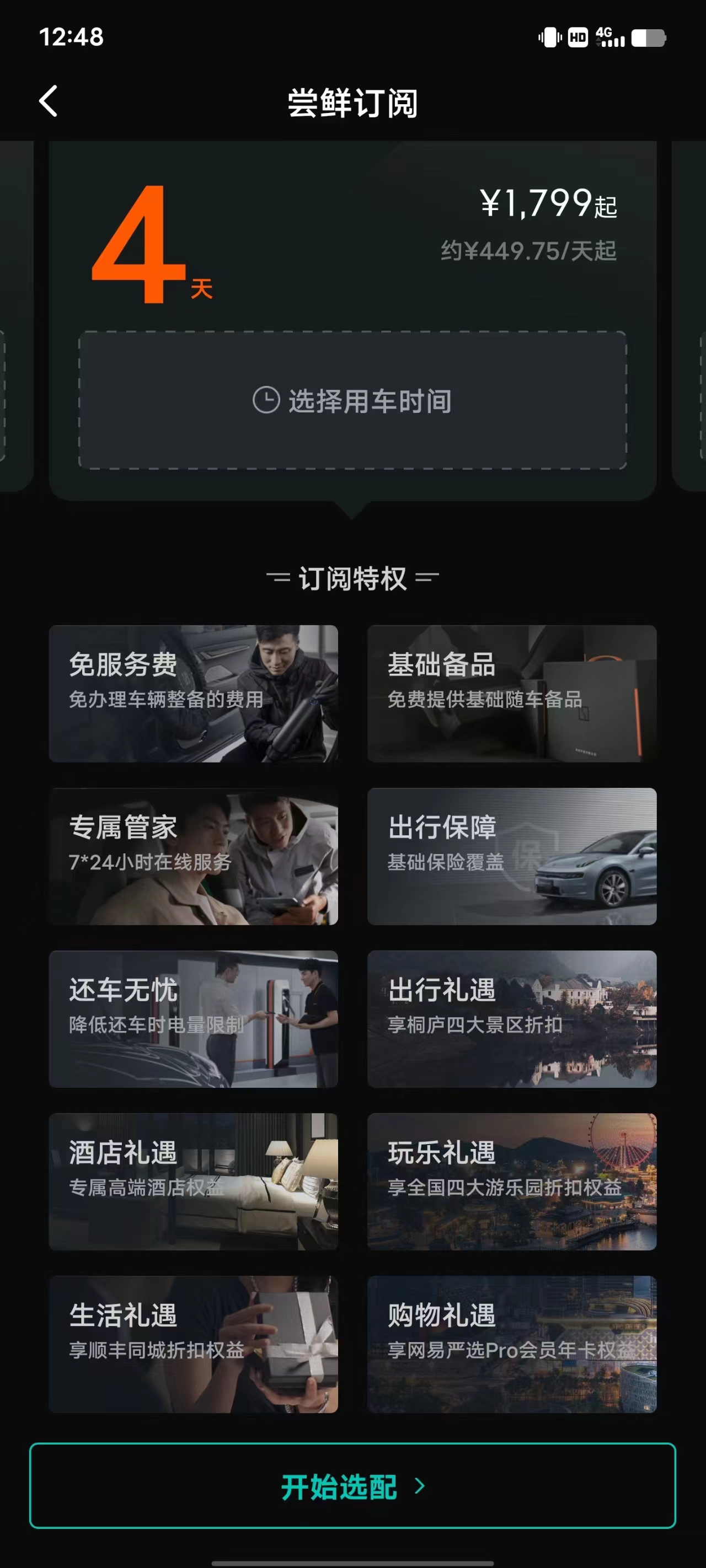而且相比于租车平台,官方下场的租车业务具备更多的订阅特权,比如提供基础随车备品、免除服务费用、专属管家等权益,也不会严格要求用户还车时尽可能还原取车时的电量。