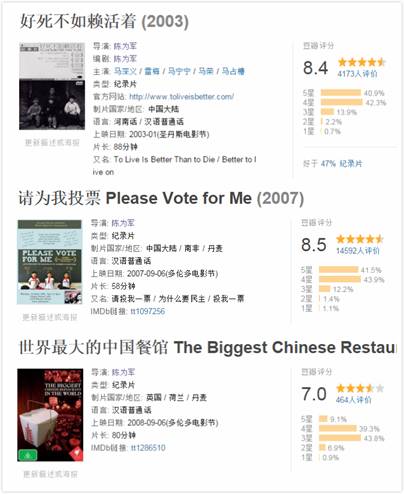 2003年入围圣诞斯电影节的《好死不如赖活着》,通过纪录河南文楼村一个艾滋家庭的生活,直击“艾滋病”这个敏感话题。2008年入围奥斯卡最佳纪录片长片的《请为我投票》,作为 “十部反映世界各国民主进程”系列纪录片之一,曾在英国BBC等电视台播出。