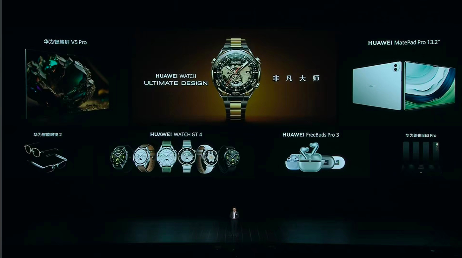 硬件层面,华为围绕“1+8+N”战略中的“8”(车机、音箱、耳机、手表/手环、平板、大屏、PC、AR/VR)进行了全面更新。