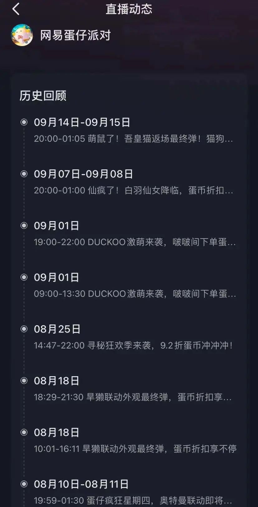 《蛋仔派对》从今年5月开始试水抖音直播带货,直播带货的频率并不高,几乎是一周一次,且每次直播都有“特定主题”,一般围绕“时事热点”、“游戏周年庆”、“新赛季开启”、“游戏IP联动”,一方面这个直播频次不会让玩家感觉疲惫,另一方面以IP联动、游戏周年庆等等为主题的直播可以进一步带动游戏的热度,同时直播带货也能够促进消费。