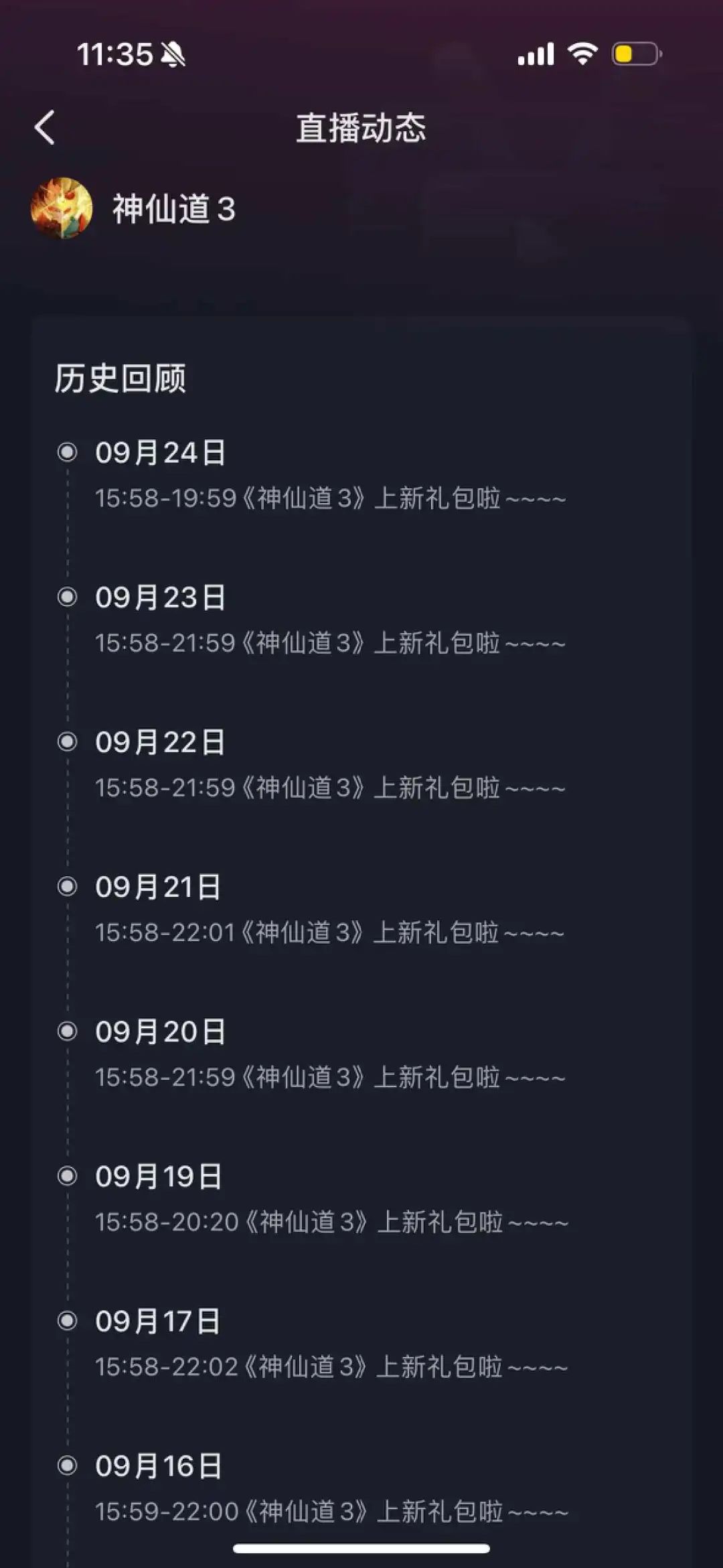 朝夕光年旗下的《神仙道3》从今年6月开始几乎每天直播,一场直播的平均时长在6个小时左右,固定在下午开播,晚上结束。