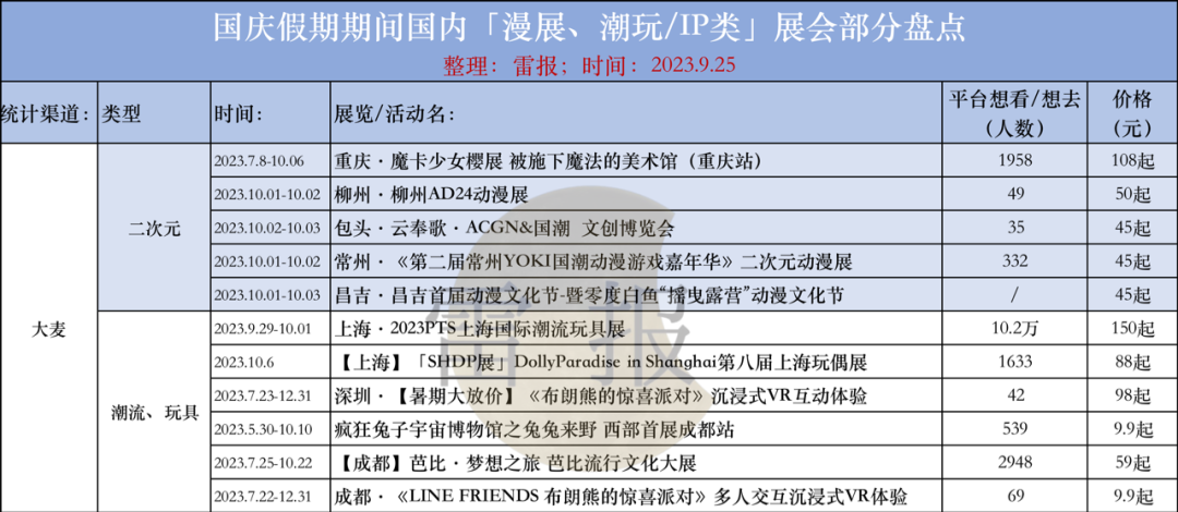 那么伴随假期,尤其是时间长达一周的节假日,漫展、潮玩展等类型活动又有着怎样的状况、特征呢?对此我们对部分活动进行了盘点,来一探究竟。