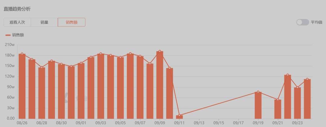 花西子抖音直播间的数据趋势,图片来源于蝉妈妈