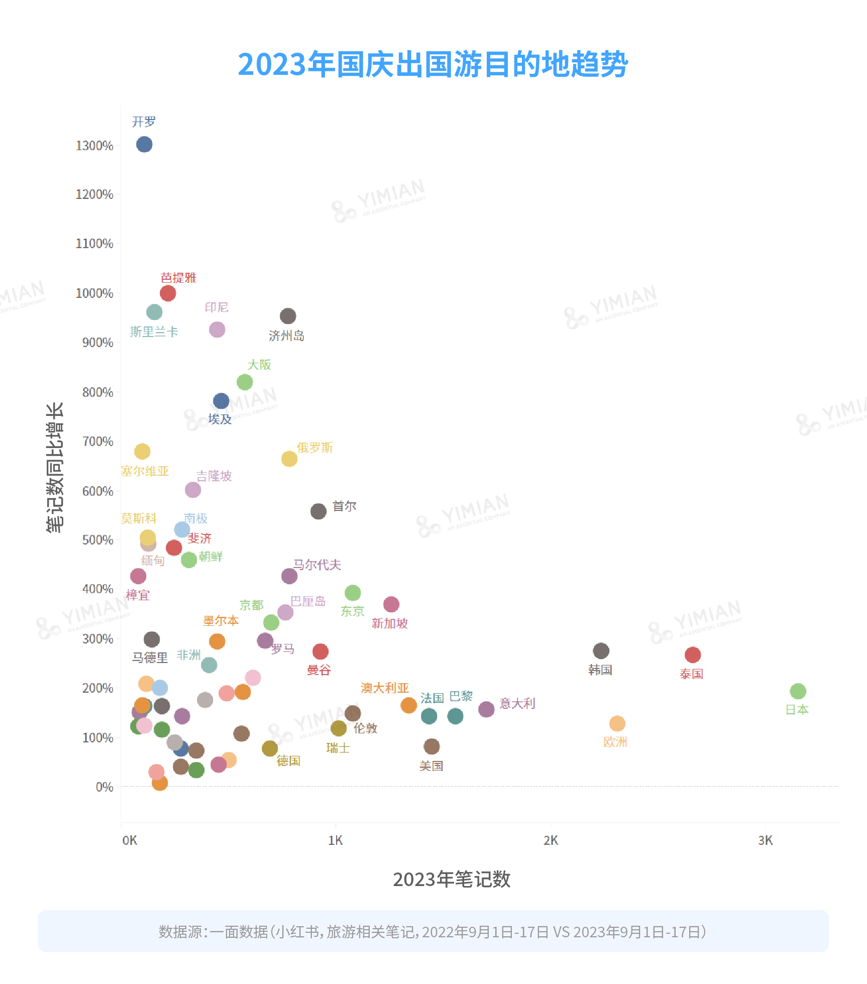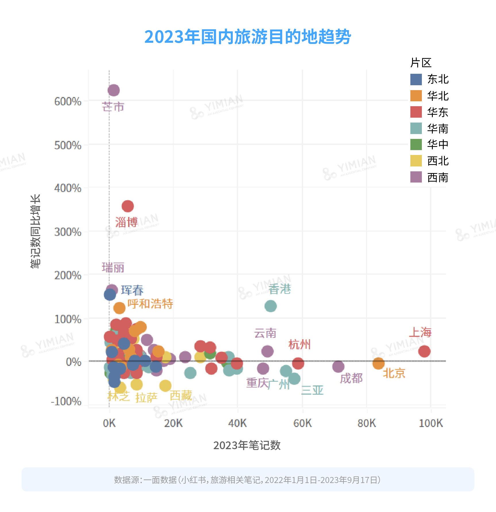不难看出,现在的笔记数并未恢复到2022年1-3月的水平,可以猜测,有部分人群的旅游需求还未得到满足,也许正等着中秋国庆黄金周,来一个超长假期一次性满足。
