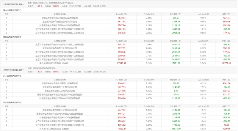 9月25日龙虎榜显示,常山药业以“连续三个交易日内,涨幅偏离值累计达到30%的证券”和“日涨幅达到15%的前5只证券”登榜。其中,9月22日、25日合计成交3.59亿股,成交金额34.04亿元;买入前五名与卖出前五名总合计净买入10772.38万元。在9月25日当天,常山药业股票成交1.98亿股,成交额超过20亿元;买入前五名与卖出前五名总合计净买入7209.16万元。