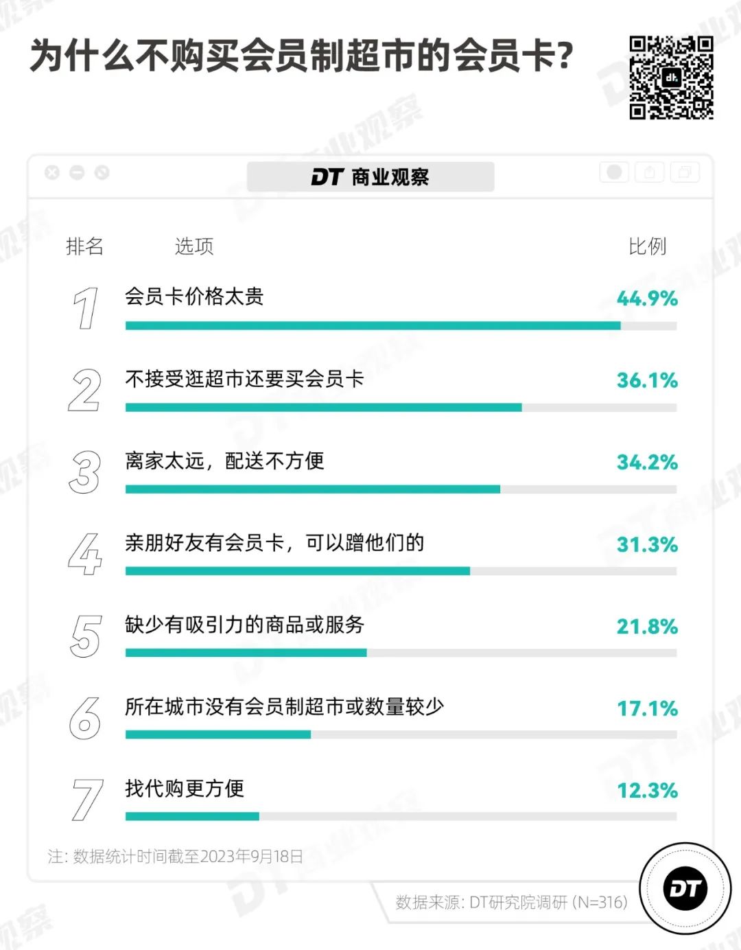 反过来看,超6成非会员可以接受“付费逛超市”这件事,超过一半的人接受会员卡的价格,只是出于距离远、商品缺乏吸引力、大份量不友好等原因没有开卡。