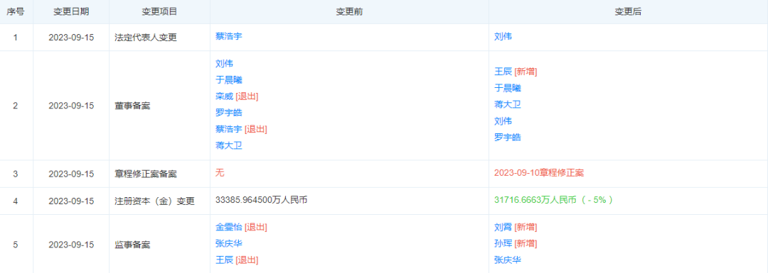 据工商信息显示,蔡浩宇不再担任米哈游法定代表人与董事长,这两个职位均由刘伟接替;同时,董事备案由7人调整为5人,其中蔡浩宇等人退出。