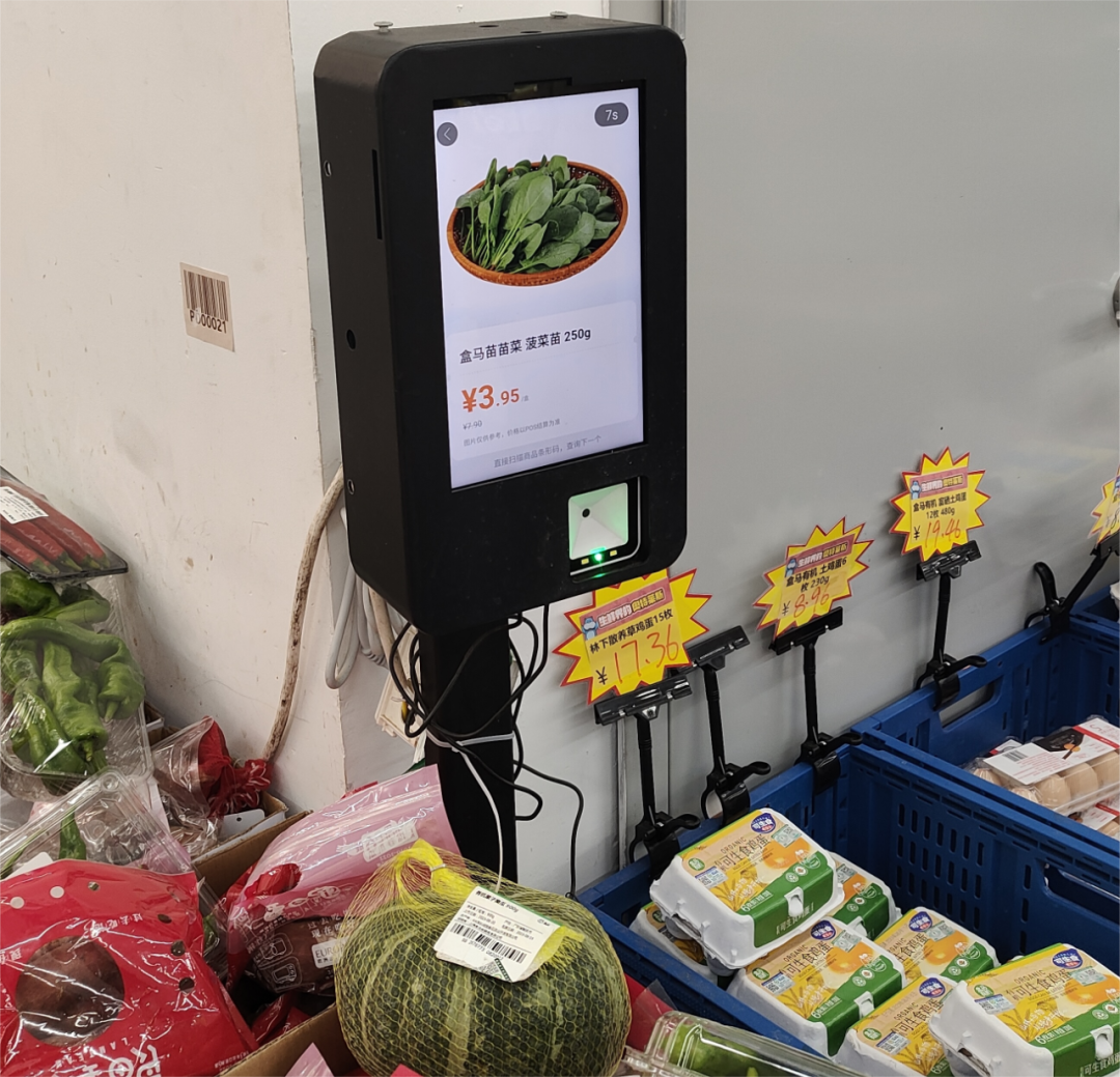 为了进一步节省人力成本,完成消费习惯的培养,盒马去除了实体人工收银,店员仅起到从旁协助的作用,由于不接受除支付宝以外的付款方式,几乎每一个来消费的顾客都会下载盒马App。
