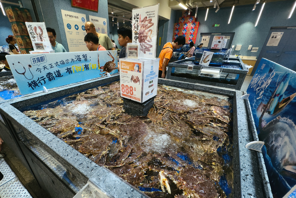 与此同时,盒马邻里还有一个竞品普遍缺乏的优势,那就是SKU更为丰富。相比之下,美团优选、多多买菜等社区团购业务,往往只会备齐高频次的日用快消品和耐存储的蔬菜、水果、肉类,SKU一般在两到三千个,而依托于盒马的供应链,并且凭借着在小区附近租赁门面的优势,盒马邻里的服务站里不仅有常规的货架、冷柜,甚至还有玻璃水箱,可供消费者选择的SKU数据称可以达到两万以上。