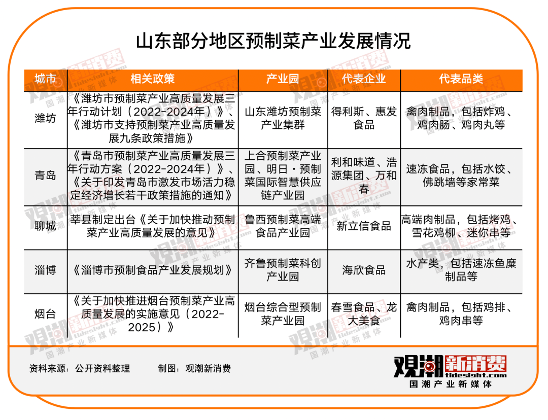 潍坊是山东较早布局预制菜的地区。早在去年4月,潍坊就提出建设“中华预制菜产业第一城”,大力发展预制菜产业,计划用3年时间培育3000家市场主体,全产业链规模突破3000亿元。作为全国4座年产蔬菜千万吨级、年产肉百万吨级城市之一,优渥的一产资源使潍坊的预制菜产业发展呈现出典型的资源驱动性。