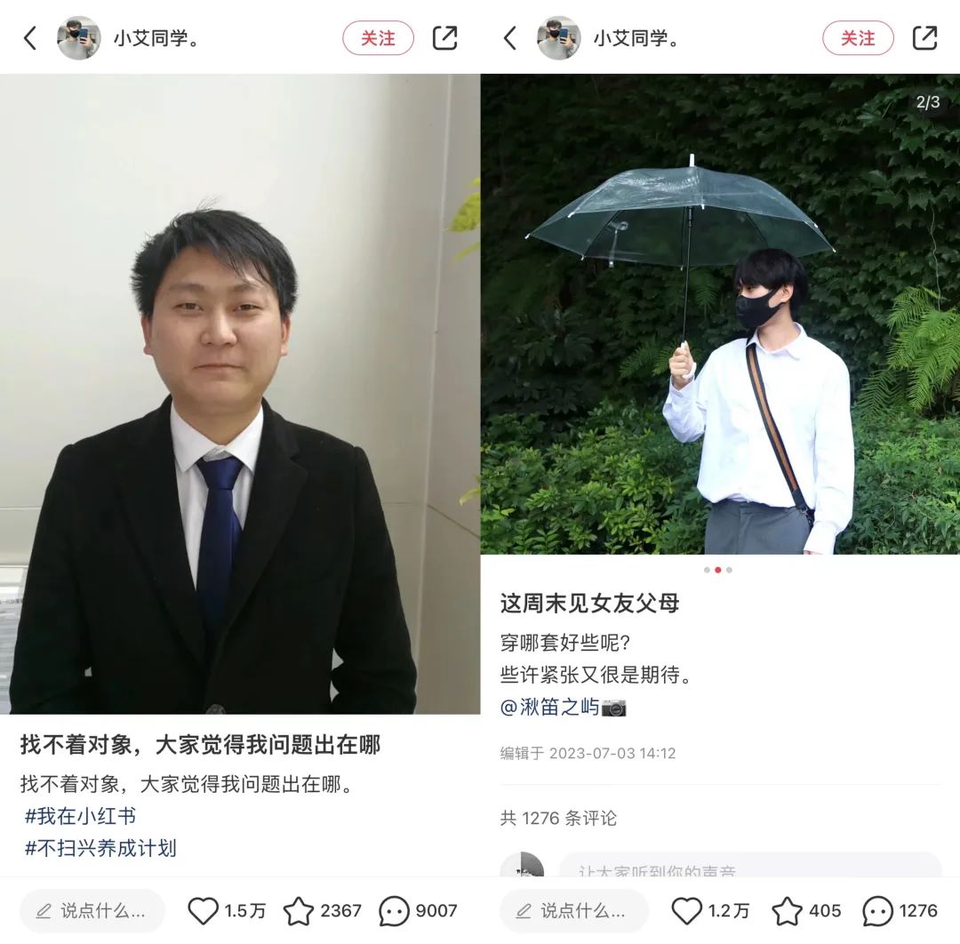 小红书用户“小艾同学”堪称“全网最听劝的男人”。2021年12月6日,他在小红书发布了第一条笔记——一张正装半身照,以及一句简单直接的文案:“找不着对象,大家觉得我问题出在哪?”