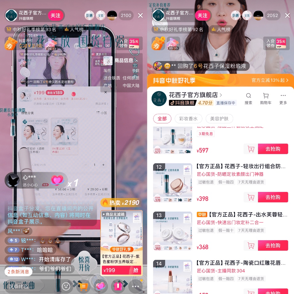 △ 不少网友涌入花西子直播间刷屏