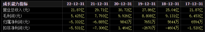 实际上,企业亏态已持续多年。2017年至2022年,扣非净利为-1.52亿元、-0.46亿元、-0.26亿元、1.46亿元、-0.73亿元、-5.53亿元,除2020年盈利外,6年间公司累亏8.5亿。营收也从2021年起掉头向下,2022年仅录得21.87亿元,相较2020年的31.87亿元下降30%,甚至跌倒了2017年的水平。也是2021年起净利转亏当年亏损6.8亿,2022年再亏5.3亿元。