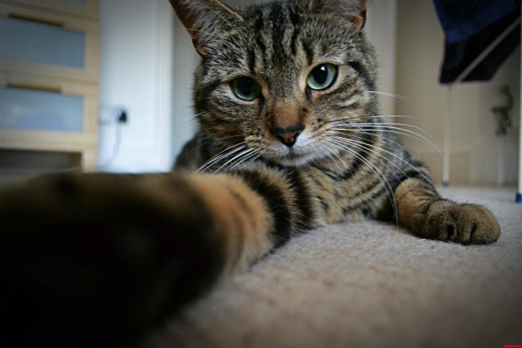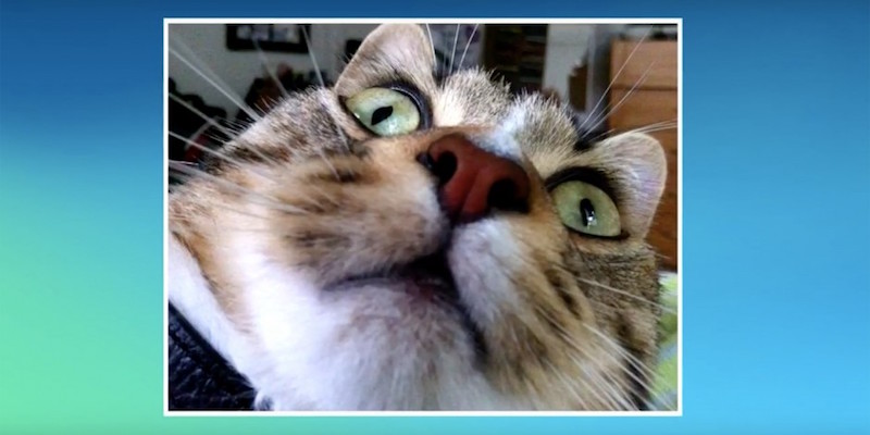 不过这样的“意外”可遇不可求,想拍出这样一张恰到好处的照片并不容易。于是,美国一家数字内容公司Current Studios制作了一款特殊的猫咪“自拍神器”APP——这款名为Candid Catmera的应用,可以通过定制化的猫咪面部识别技术给它们拍照。主人不在家的时候,平板电脑上打开的应用会播放吸引猫咪的动画,比如奔跑的老鼠、游来游去的鱼、猫粮、激光点等等。等猫好奇地跑过来,APP就会趁机拍下猫咪的照片,角度就像是它们的自拍。然后自动发给主人,上传社交网络。