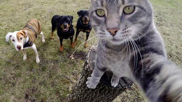 其中有不少是猫咪在各种意外状态下的“自拍照”:有的霸气自信,有的面露惊恐,还有和汪星人同框的……