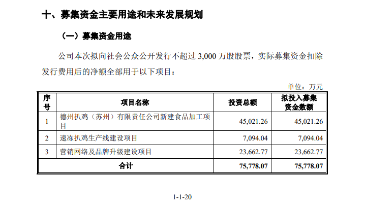 按今年3月份招股书所披露的计划,德州扒鸡IPO拟向社会公众公开发行不超过3000万股股票,计划募资约7.58亿元。