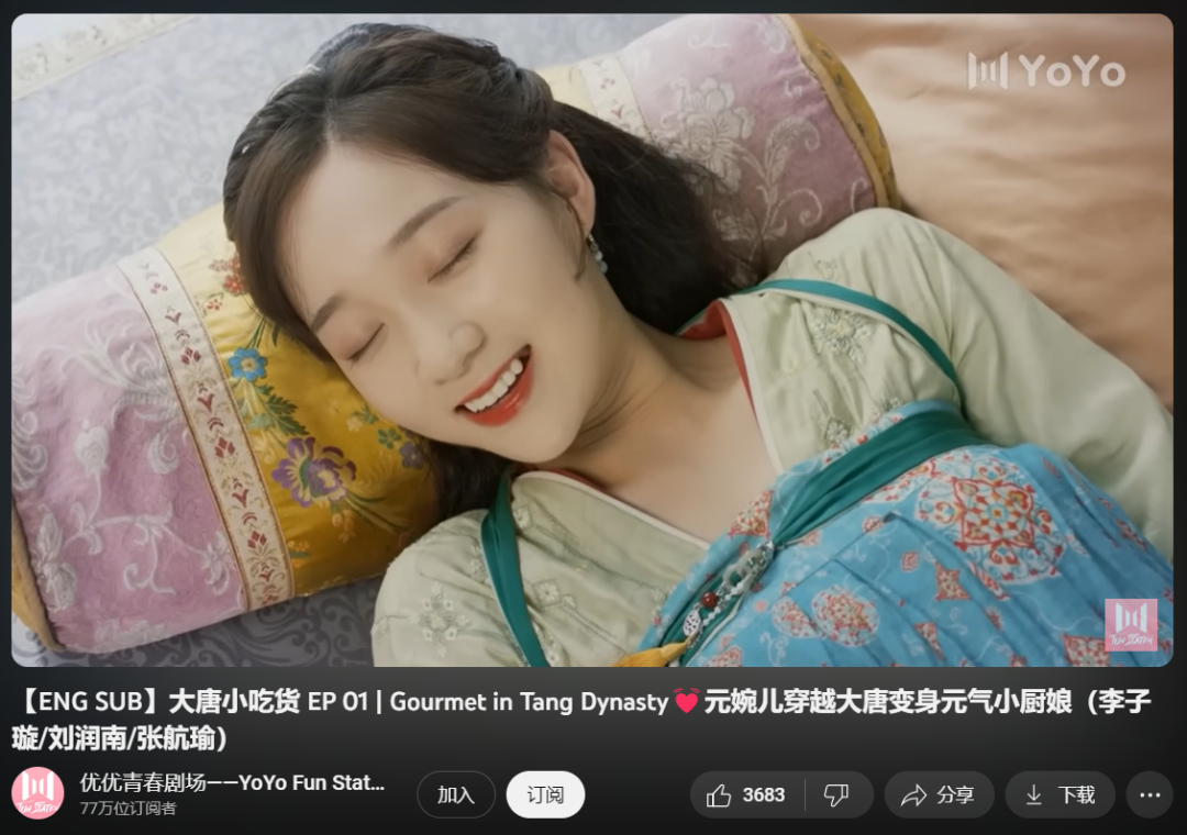 根据世纪优优公开报道,2021年7月12日,微短剧《大唐小吃货》在腾讯视频正式播出,该剧由世纪优优独家海外发行,同步上线YouTube优优青春剧场,英语、阿拉伯语、西班牙语、葡萄牙语等多语言频道,VIKI美洲、欧洲、印度、大洋洲跟播。