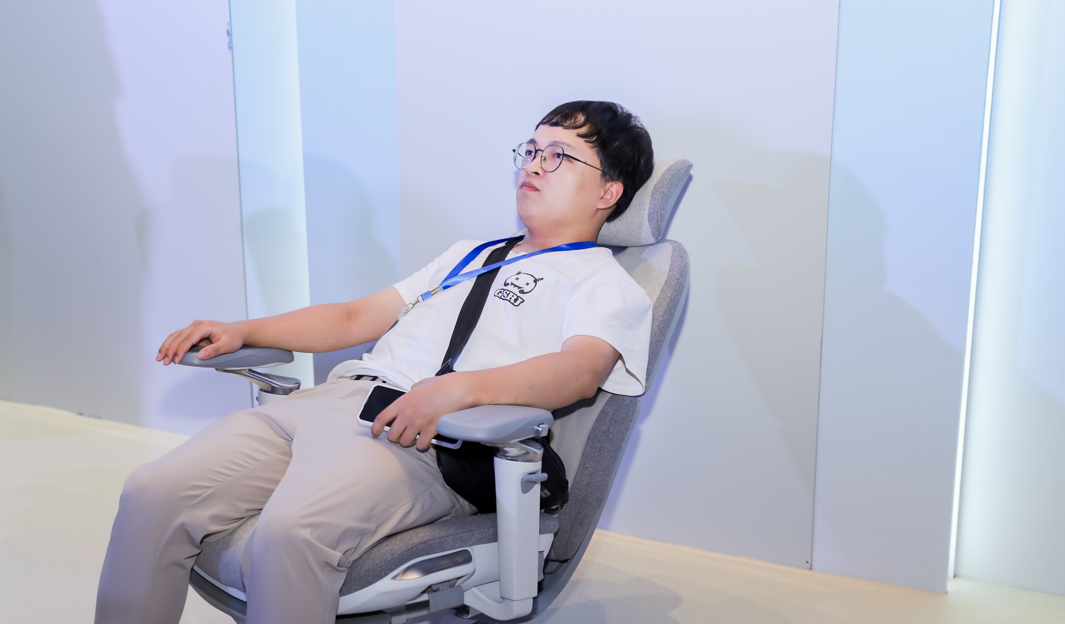 从现场产品的体验来看,在人体往后倾仰时,座椅的坐垫也会向前移动。销售人员表示,最多可以躺倒150度,适用人群为90斤至260斤,“体重越高的消费者体验感会越强。”
