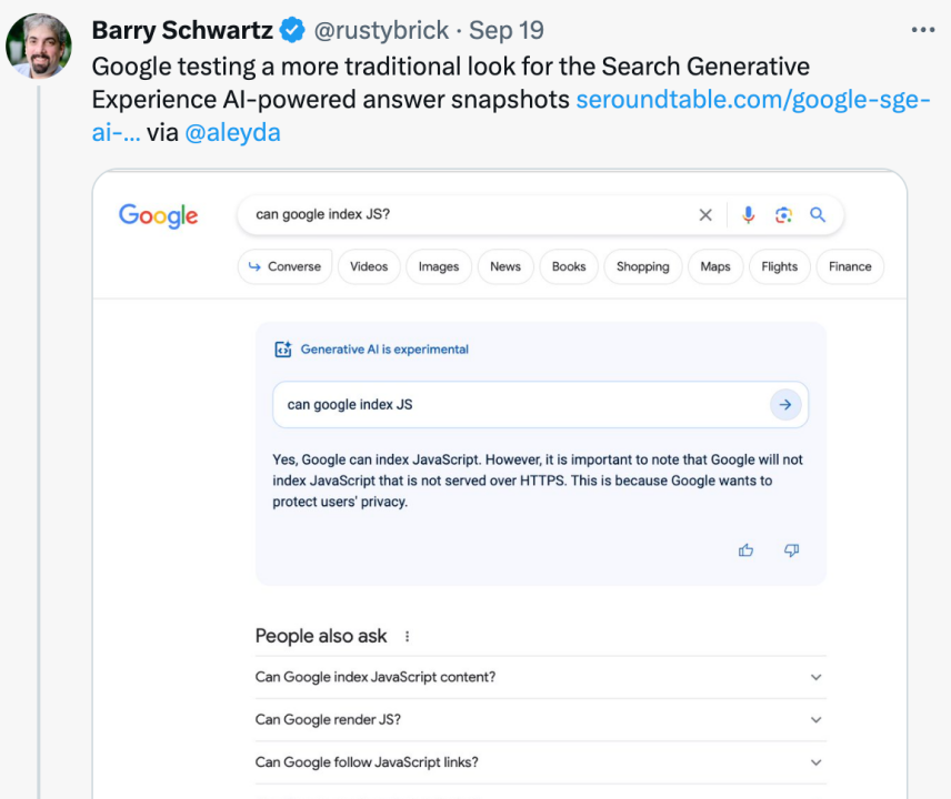 而最近,谷歌正在测试其搜索生成体验AI生成快照答案的新设计和布局。这一新设计将AI答案整合到了更传统的用户界面中,与人们从SGE结果中所期望的多彩界面不同。