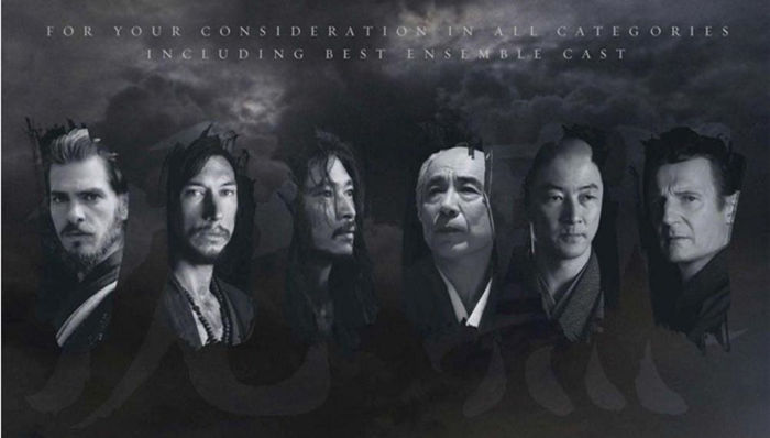 由马丁·斯科塞斯导演、改编自日本文学家远藤周作1966年出版同名小说的电影《沉默》日前公布了日本版的海报和预告片。这部电影集结了安德鲁·加菲尔德、连姆·尼森、洼冢洋介、浅野忠信、尾形一成、塚本晋也、小松菜奈、加濑亮和笈田吉等美国日本的一线巨星,是本次奥斯卡颁奖季的热门电影。