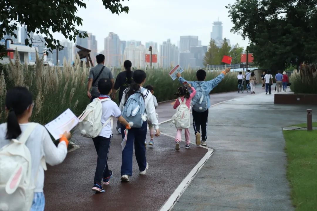 近日,一场趣味十足的杨浦滨江儿童友好迎国庆徒步打卡活动在杨树浦路广德路亲水平台展开,吸引了约70名孩子参加。