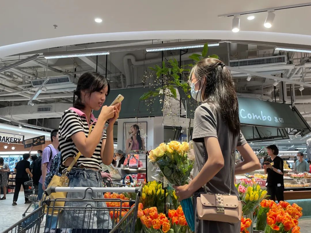 28日晚上,中秋假期开始了,黑标店迎来一波小高峰,店内出现了不少年轻面孔,下班后的情侣夫妻、为家庭采购的母女、结伴而来的年轻女孩们,都涌入了这家“新盒马”。