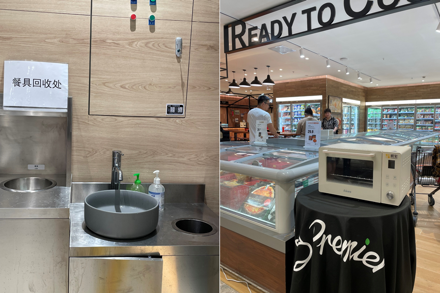 日世软冰吧台的旁边,设有一个洗手台,解决吃完冰淇淋黏手的困扰,有消费者称“这个细节还是贴心的”。再比如,预制菜区域旁有一个微波炉,消费者在购买披萨等商品后可以直接加热食用。