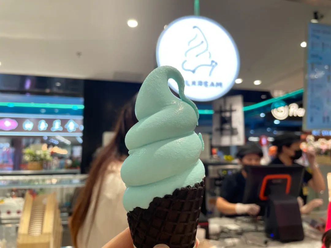 日世软冰就位于进门后右手边,黑标店门外有一个亮眼的冰淇凌霓虹灯装置,这里是人们排队争相打卡的第一个目标。