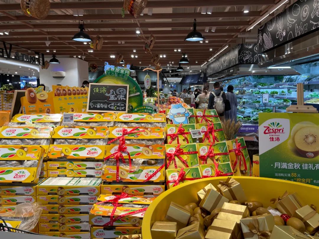 中秋之际,江浙沪地区偏好的熟醉虾蟹,融入了茉莉花味道,首次上新。水果礼盒、有机珍味干味礼盒、戊戌狗年的53度茅台酒等组合产品散落在门店各个区域,主打囤货送礼场景。