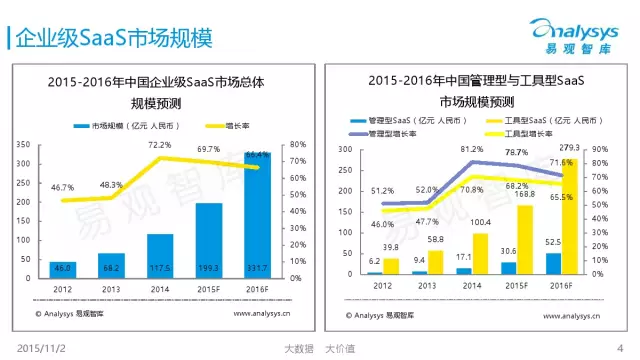 国外的用户愿意为SaaS本身去付费,这个领域的公司光靠SaaS软件的使用费也能够成为一家不错的规模型企业,甚至能上市。而国内中小企业的付费能力不太强,加之很多企业又没有付费的习惯,让他们去为SaaS软件付钱,难度也会比较大。