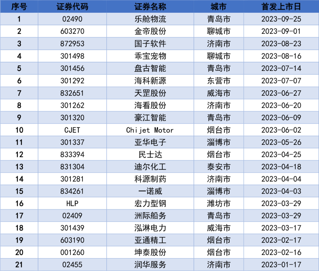 从上市时间来看,每个月份都有山东企业上市,整体氛围浓厚。