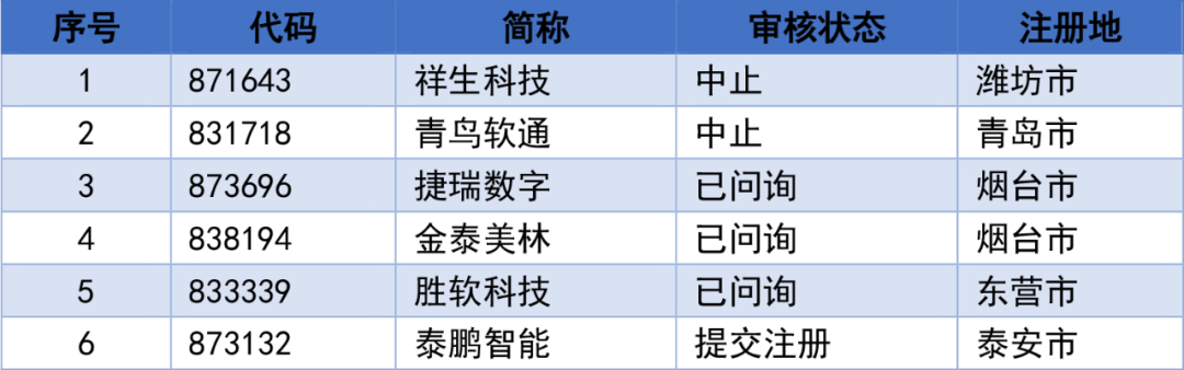 根据北交所官网信息显示,目前在审的山东项目共有6个,其中1个处于提交注册阶段。
