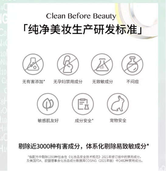 2022年7月,广东省化妆品学会审查通过的《化妆品纯净美妆通则》团体标准显示,纯净美妆(Clean Beauty)应基于公开透明及可追溯、对人体健康安全负责、环境友好及善待动物和承担社会责任及人道主义的理念。