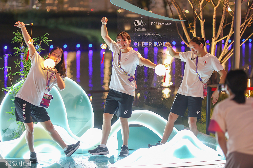 不少外国运动员在运动员村参与了汉服体验,制作了灯笼、花灯和花篮。现场设置的踢毽、投壶、蹴鞠体验区也吸引了运动员们的目光,运动员们纷纷拿出手机拍照留念。