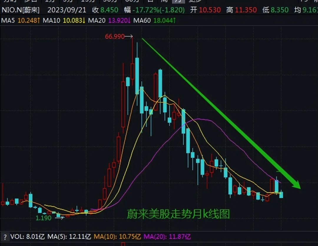 蔚来手机问世并不能拉抬股价,9月19日,蔚来暴跌17%,周四再跌4.2%,最新股价8.45美元,和8月初相比,一个多月差不多腰斩;和2021年1月历史高点67美元相比,跌幅则超过80%。