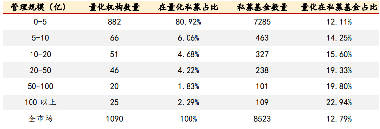 据浙商证券研究所,截至2023年9月7日,市场中备案的私募管理人达8523家,其中以量化策略为主的共计1090家,在所有私募管理人中占比约为12.79%;现有百亿级别的私募基金共计109家,其中25家为百亿量化私募,在百亿私募中占比约22.9%。