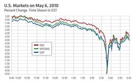 据浙商证券研究,2010年5月6日道琼斯工业指数盘中暴跌近1000点,创下盘中点数跌幅纪录。根据美国证监会(SEC)出具的调查报告,止损订单的接连触发成为导致“闪电崩盘”(flash crash)的主要原因之一,量化交易引发的连锁反应使得指数在瞬间暴跌。
