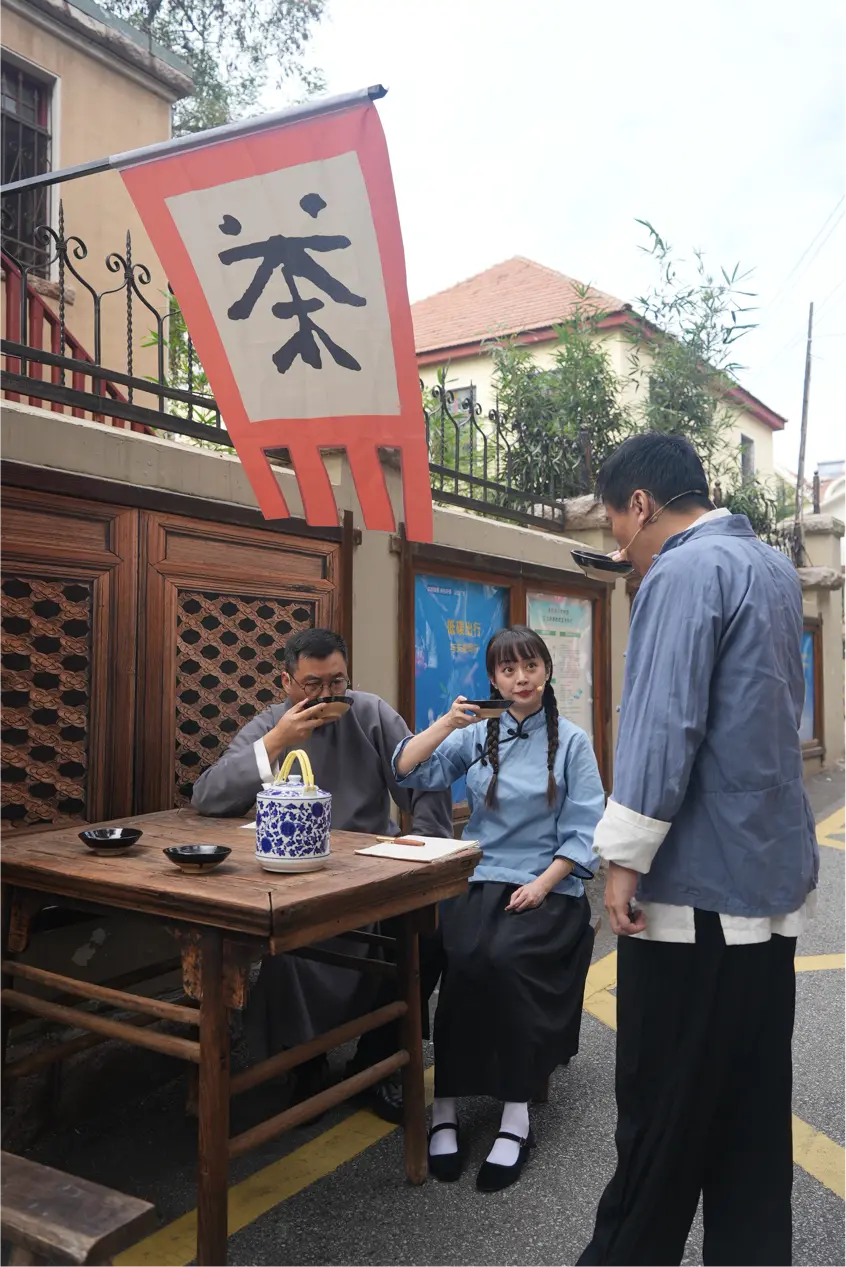 文化符号、建筑符号、历史符号……该剧将骆驼祥子博物馆以及街区整体环境与剧情进行巧妙地设计融合,在剧中将黄县路和骆驼祥子博物馆带回到民国时期,并在博物馆适当位置设置或摆放与戏剧内容有关的道具和置景,提升游览观赏感的同时也增强了观众的互动参与感,沉浸式话剧的魅力令市民游客纷纷驻足,拍手叫好。