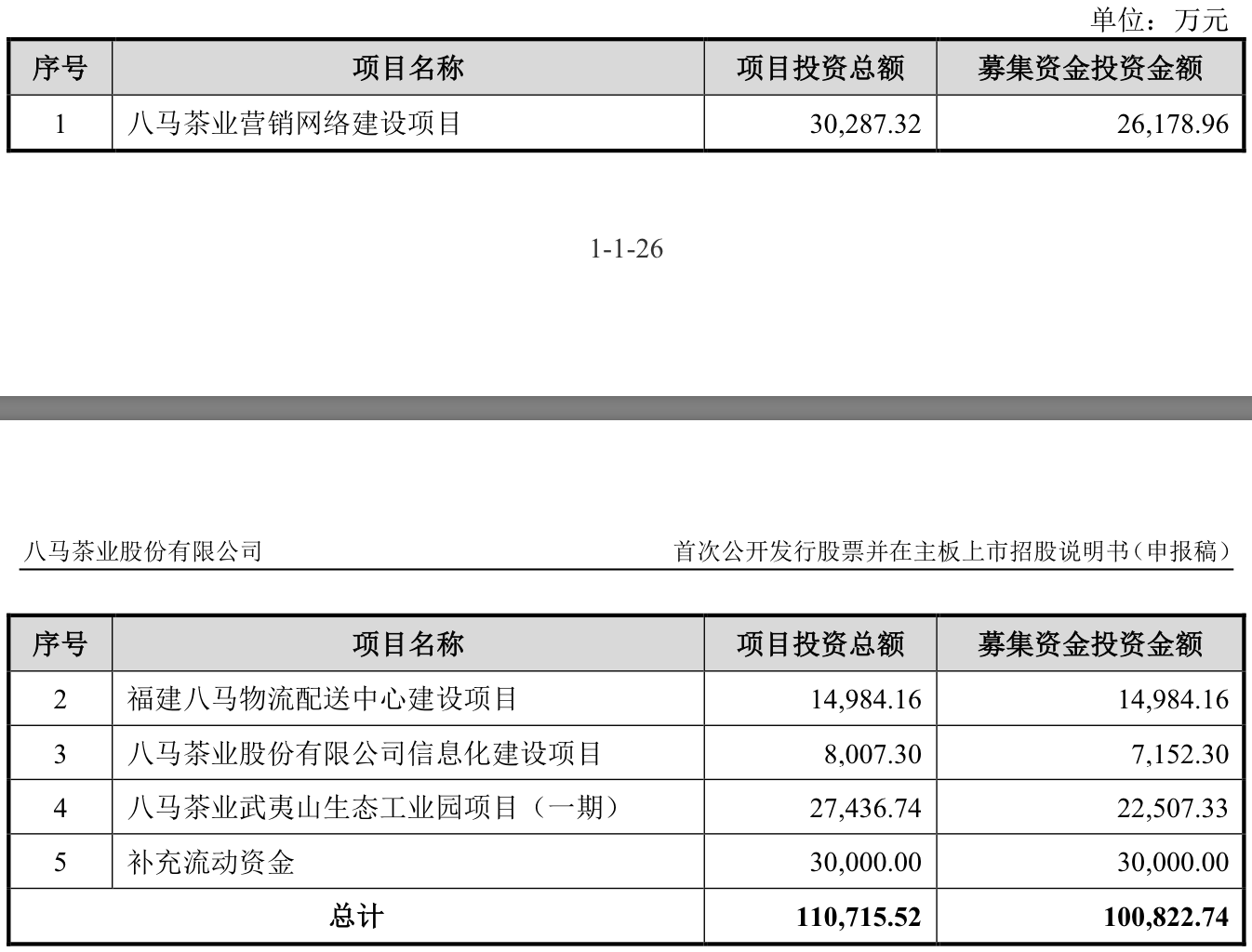 八马茶业拟募集的10亿元资金中,除3亿元用来补充流动资金,其余全部投入主营。