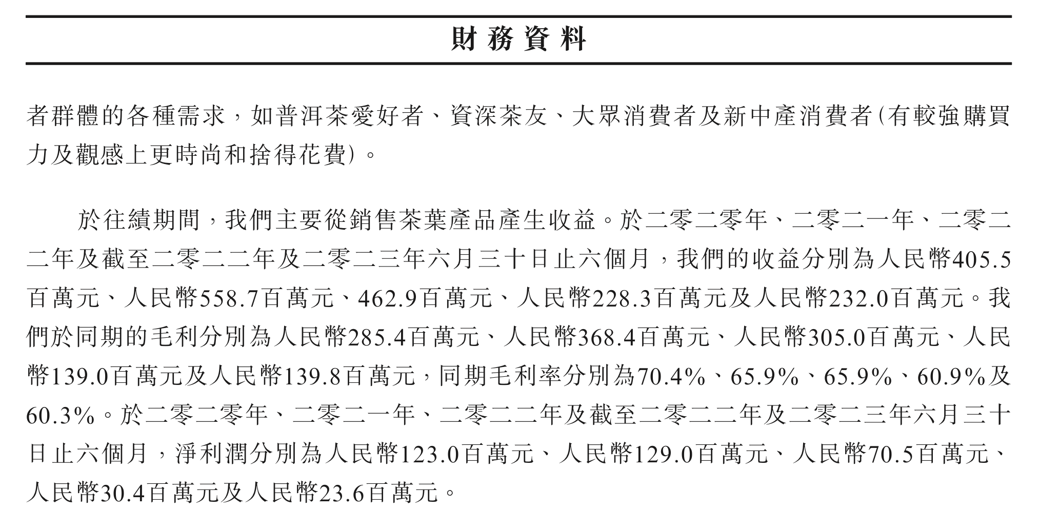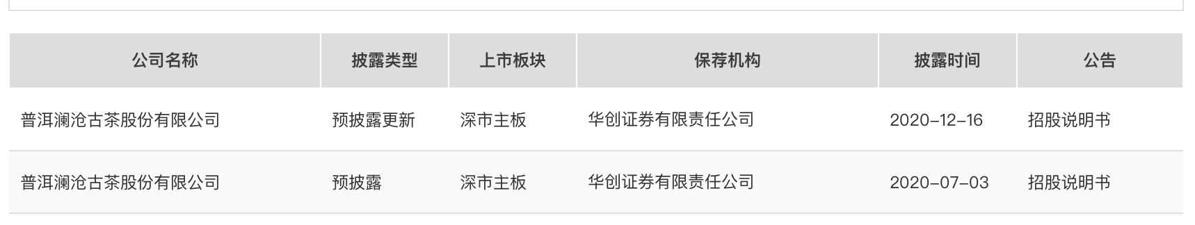 另一家澜沧古茶,大致也是在2020年7月3日进行的预披露,由华创证券保荐,剑指深市主板,后2020年12月16日预披露更新,也是“茶叶第一股”角逐者。但公开信息显示,在2021年6月3日上会前夜,公司主动申请撤回申报材料,随后公司向香港联交所递交的招股说明书。从香港联交所可以看到澜沧古茶更新的数据。