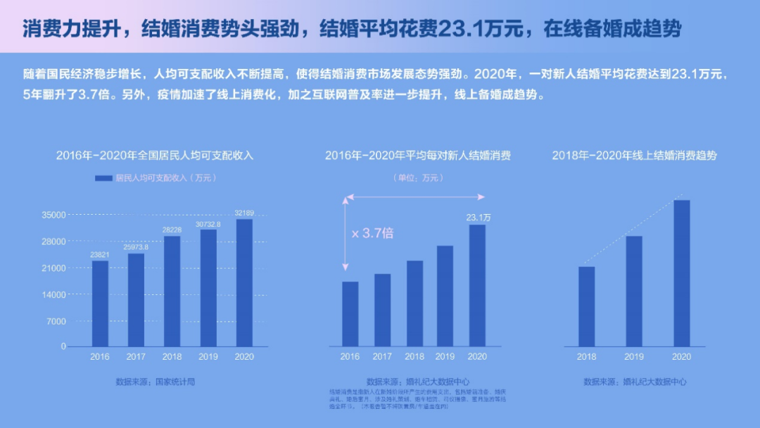 但随着婚宴价格的逐年攀升,如今靠份子众筹婚礼变得极为不现实。《2021中国结婚消费新常态用户行为洞察报告》显示,当今一场婚礼平均消费破20万,至少要收满200个1000块的份子才能“回本”。