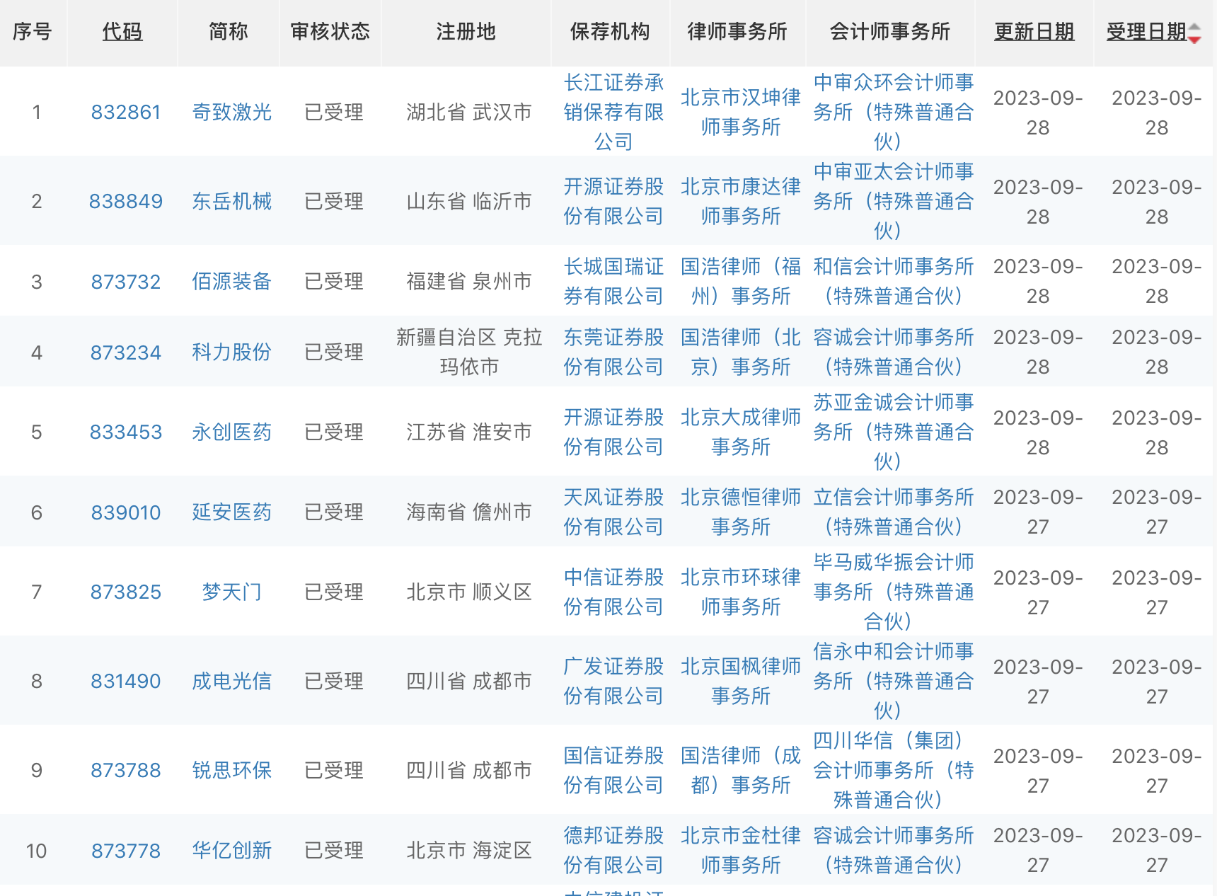 除此外,北交所方面,节前一周更直接新受理了10家公司的申请。9月来北交所共计新受理了16家公司的申请。