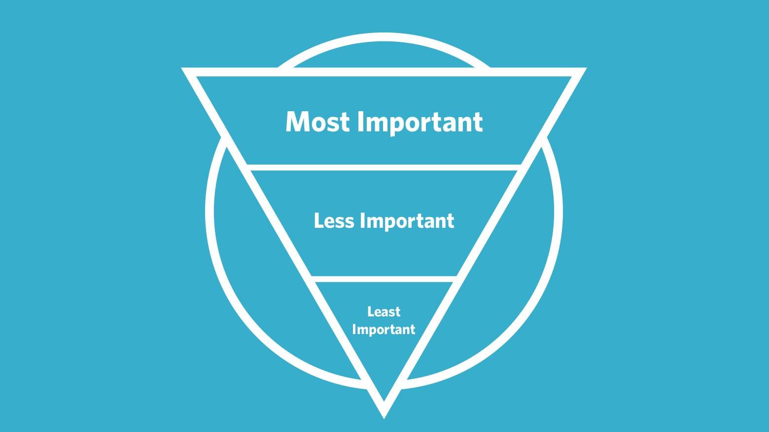 在三个维度的信息中,根据主要矛盾和次要矛盾,分出信息的层级,然后根据下面的传播倒三角安排你的信息。