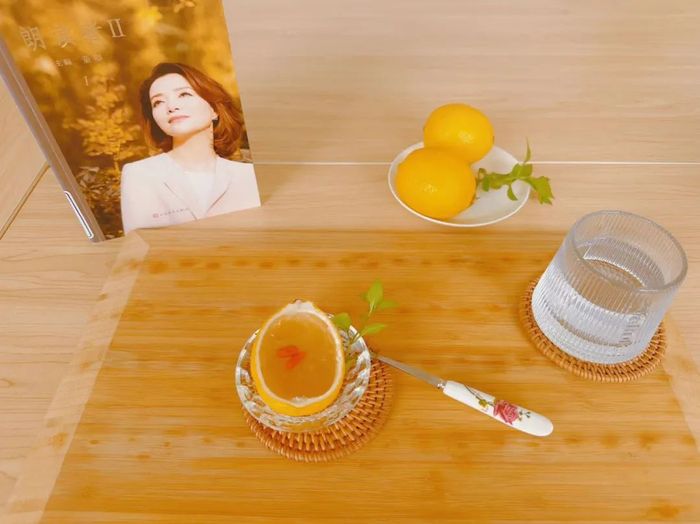 第一步:柠檬切开挖去果肉,银耳泡发、秋月梨削皮备用。